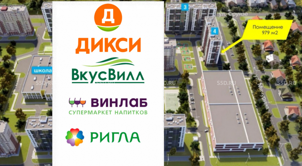Помещение находится в стилобатной части жилого дома. Общая площадь 979 кв метров.